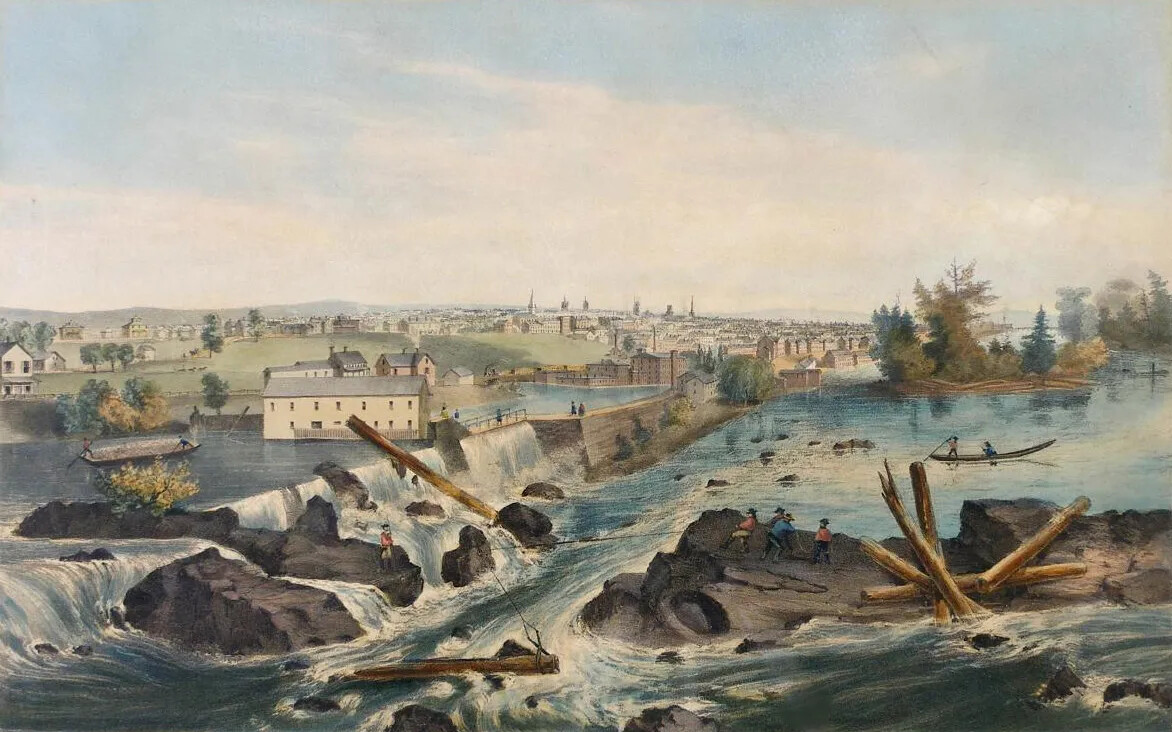 The city of Manchester expanded alongside the Amoskeag Manufacturing Company, with much of the city’s development controlled by the company. Amoskeag planned out the city’s center along Elm Street, set aside land for public parks, and organized housing for its employees.