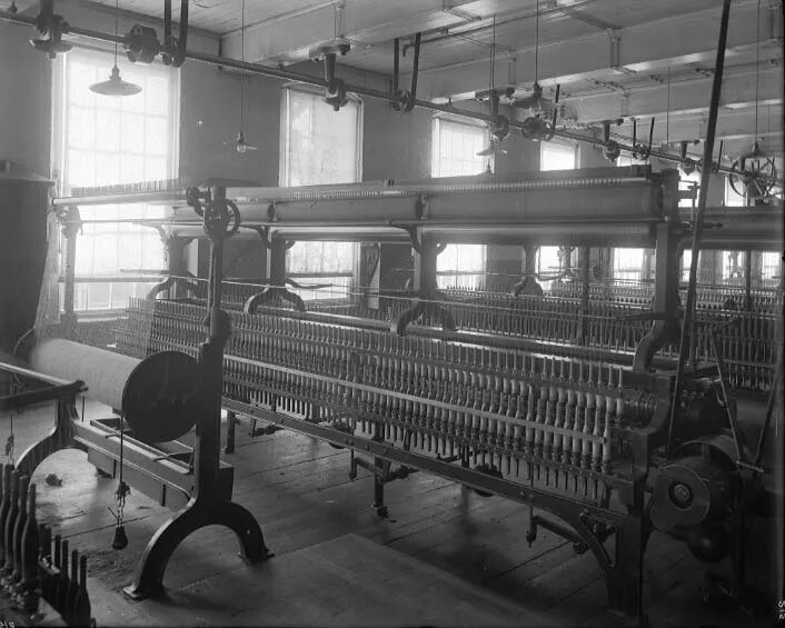 Inspired by Blodget’s successes and the power of the Merrimack River, a group of men led by Benjamin Prichard established the Amoskeag Cotton and Woolen Manufacturing Company, the precursor to the Amoskeag Manufacturing Company, in 1814. The first structure of this mill was actually on the opposite banks of the Merrimack from Manchester in land that was owned by Goffstown at the time. As production grew, so too did the need to expand the company’s physical footprint, and buildings spread to the islands in the Merrimack and onto the east side of the river. The company imported new technologies from England that allowed the process of generating textiles to become more and more mechanized and encouraged further growth. Nevertheless, the Amoskeag Company floundered in these early years. It was only after the faltering business had been bought out by a group of Boston investors in 1830 that it began its meteoric rise, fueled by a a massive investment of Massachusetts capital. Between 1838 and 1915, the Amoskeag Manufacturing Company constructed a total of 40 mill buildings, a dozen or so of which still stand in the city today.