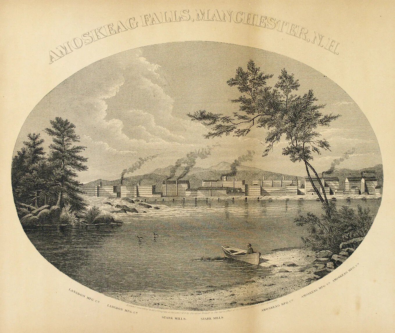 Once the largest textile mill in the world, the Amoskeag Manufacturing Company dominated the textile industry in the 19th and early 20th centuries. It was one of the great industrial giants of its day, and its impact on New Hampshire’s development was profound. The company made Manchester the largest city in both New Hampshire and northern New England, a distinction the city still holds today even decades after the Amoskeag mills closed.