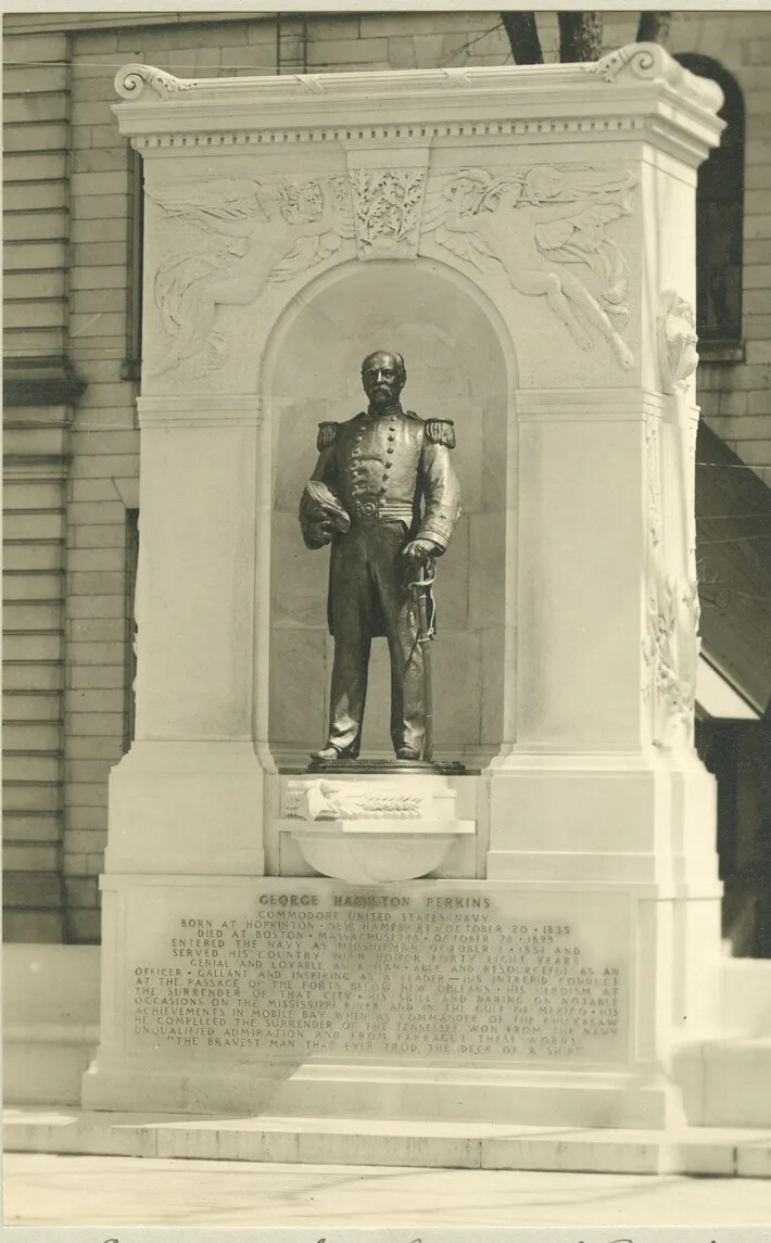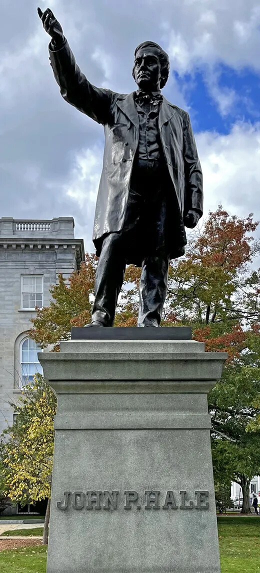 In the late 19th century, the state also began to build statues on the state house lawn, commemorating figures from the state’s history: Webster, Stark, Hale, Pierce, and Admiral George Hamilton Perkins. Other memorials, mainly to New Hampshire soldiers or symbols representing national patriotism like a replica of the Liberty Bell, were added over the years.