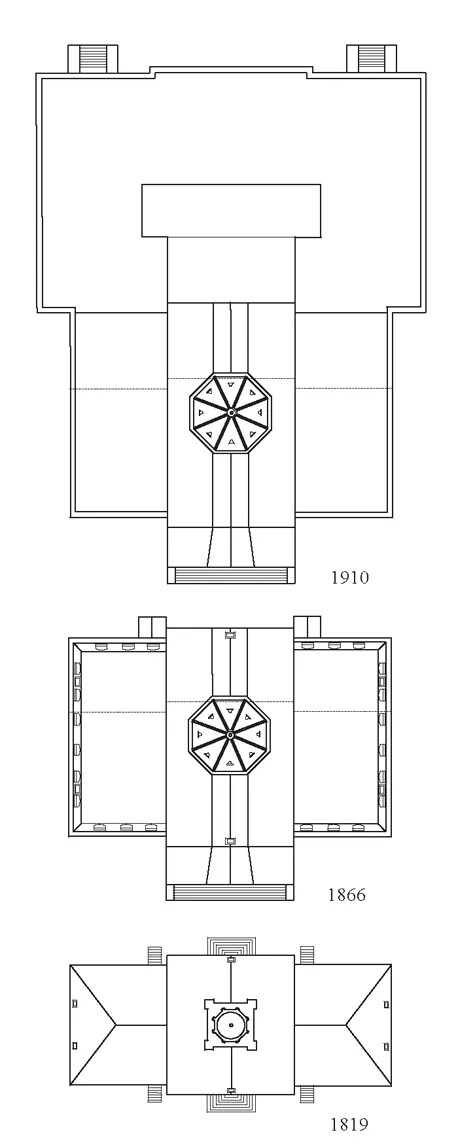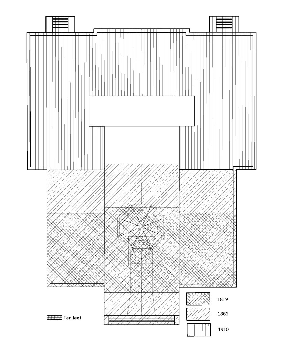 Within just a few decades of its completion in 1819, the state house had already become too small for the state government, and in 1864–66, the building underwent a major renovation. The back of the state house was expanded, which created more office space and made both chambers of the legislature larger. The cupola on top of the building was replaced with a gold dome and the wooden eagle was reinstalled at its pinnacle. After the Civil War, the flags from New Hampshire’s regiments were placed in glass cases in Doric Hall, giving the space a new name: the Hall of Flags. In the years that followed, dozens of portraits were added to the state house walls of all the governors of New Hampshire except one (Meshech Weare, the first governor) along with other notable New Hampshire figures like General John Stark, President Franklin Pierce, and Senators John P. Hale and Daniel Webster.