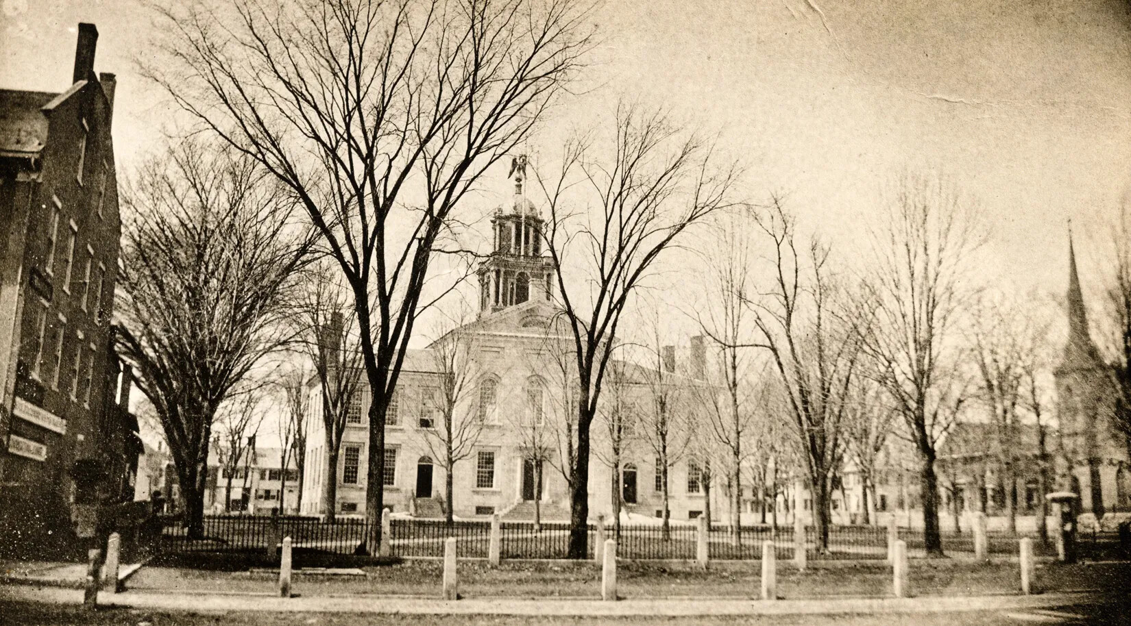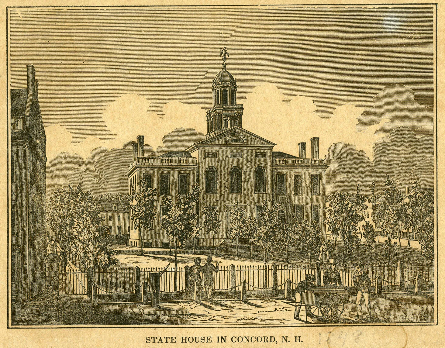 At the time the state house was built, Concord had only recently become the state capitol. Before that, the legislature met all over the state, in churches, town halls, and even taverns. Although sessions were occasionally held in places like Charlestown, Hanover, Hopkinton, and Amherst, most of the time the center of state government was in the Seacoast region, which frustrated people who lived elsewhere in New Hampshire. Establishing the state capitol in Concord, which is located at the geographical center of the state, was a compromise.