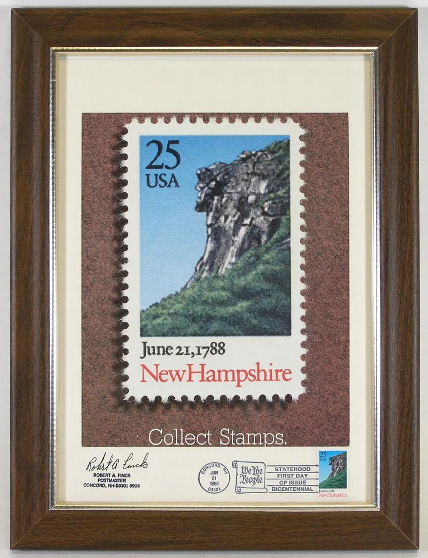 Though its exact age at the time of its fall from the side of Cannon Mountain is debatable, we know the remarkable rock formation known as the Old Man of the Mountain looked out over Franconia Notch for thousands, if not millions, of years. It inspired writers, artists, musicians, and politicians, not to mention the tens of thousands of visitors and hikers who explored the Notch every year for the purpose of seeing it themselves. Officially named a state emblem in 1945, the rugged “face” of the Old Man was widely embraced as a miraculous symbol of the character of the state of New Hampshire.