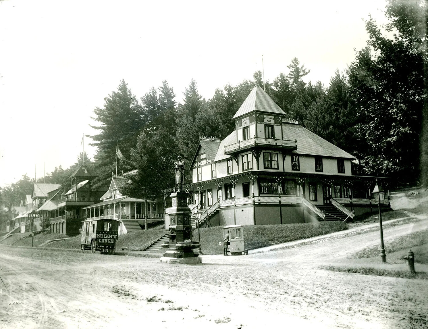 Concord nurse Harriet Dame gifted a house to the Second New Hampshire Regiment, the outfit for whom she cared throughout the war. Even the National Veterans’ Association built a house on the site. The Boston & Maine Railroad, which was in the process of consolidating its hold on all train service in the state, helped fund many of these buildings and ran special trains to make it easier for veterans and their families to reach the site.
