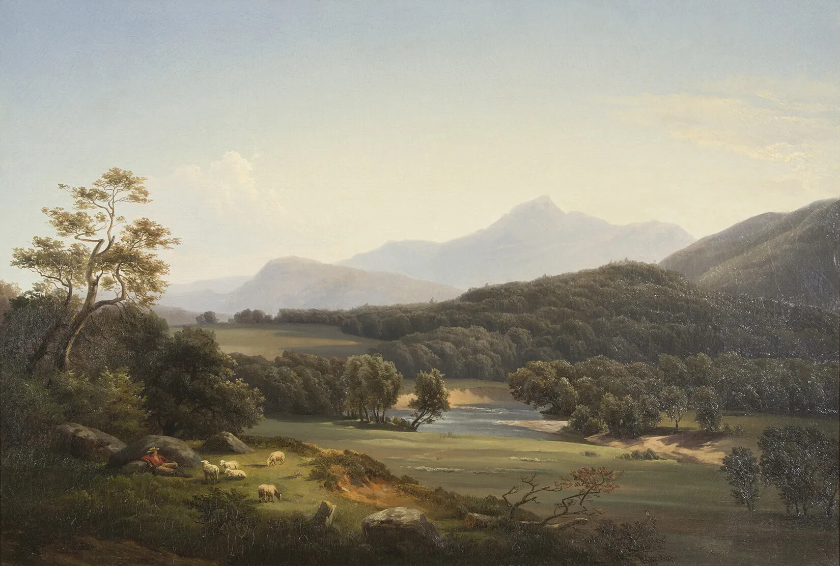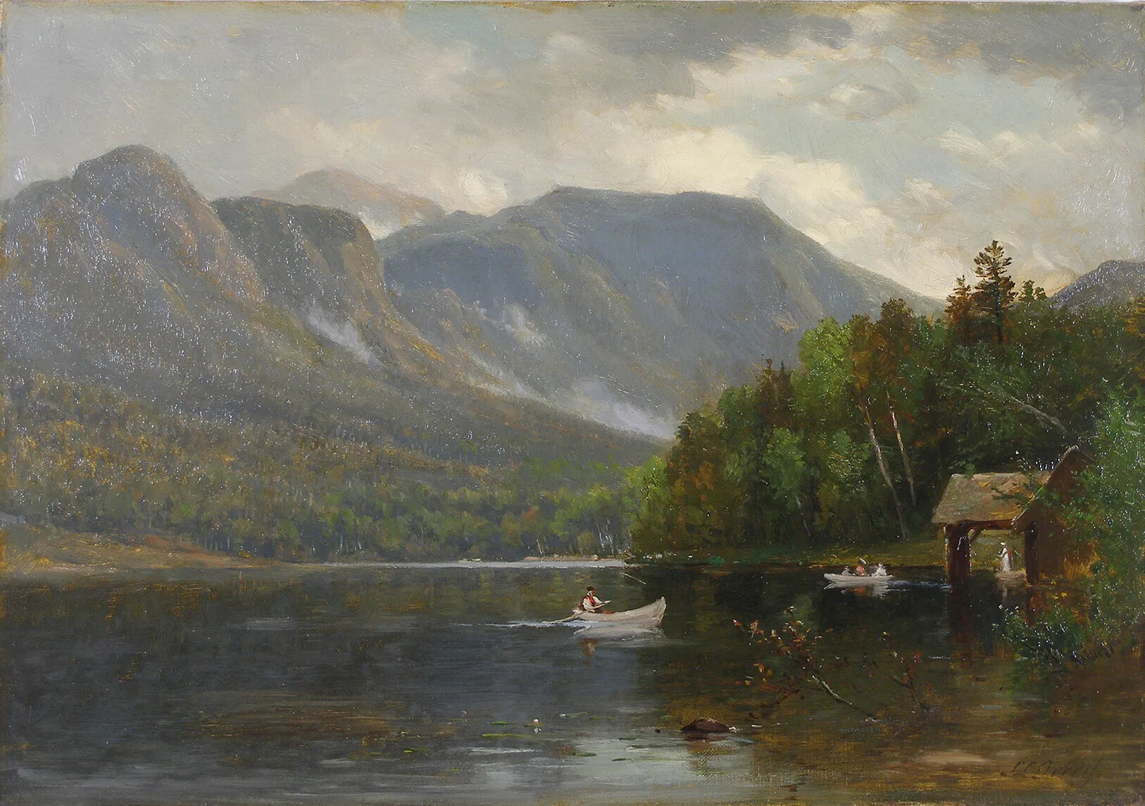 The White Mountain school art, which is a specific style rather than an actual school, focuses on large, sweeping landscape paintings that emphasize the power and glory of nature against the contrast of the insignificance of man. White Mountain art also tended to emphasize solitude and a pastoral sense of harmony and tranquility. The White Mountains’ rugged natural beauty and sparsely settled landscape served as the perfect subject and backdrop for artists seeking to capture this Romantic ideal on canvas. Although artists painted scenes of New Hampshire in all seasons, depicting the vibrant colors of a New Hampshire autumn was a particularly popular theme. The White Mountain style of art was similar to the Hudson River School, which flourished at roughly the same time in upstate New York. In fact, many artists painted in both regions. These two schools of painting sought to create a uniquely American style of art, one that could challenge notions about the superiority of the European masters. Europe had its grand cities, its cathedrals, and its ancient ruins—America had the grandeur of an untouched and unspoiled natural world.