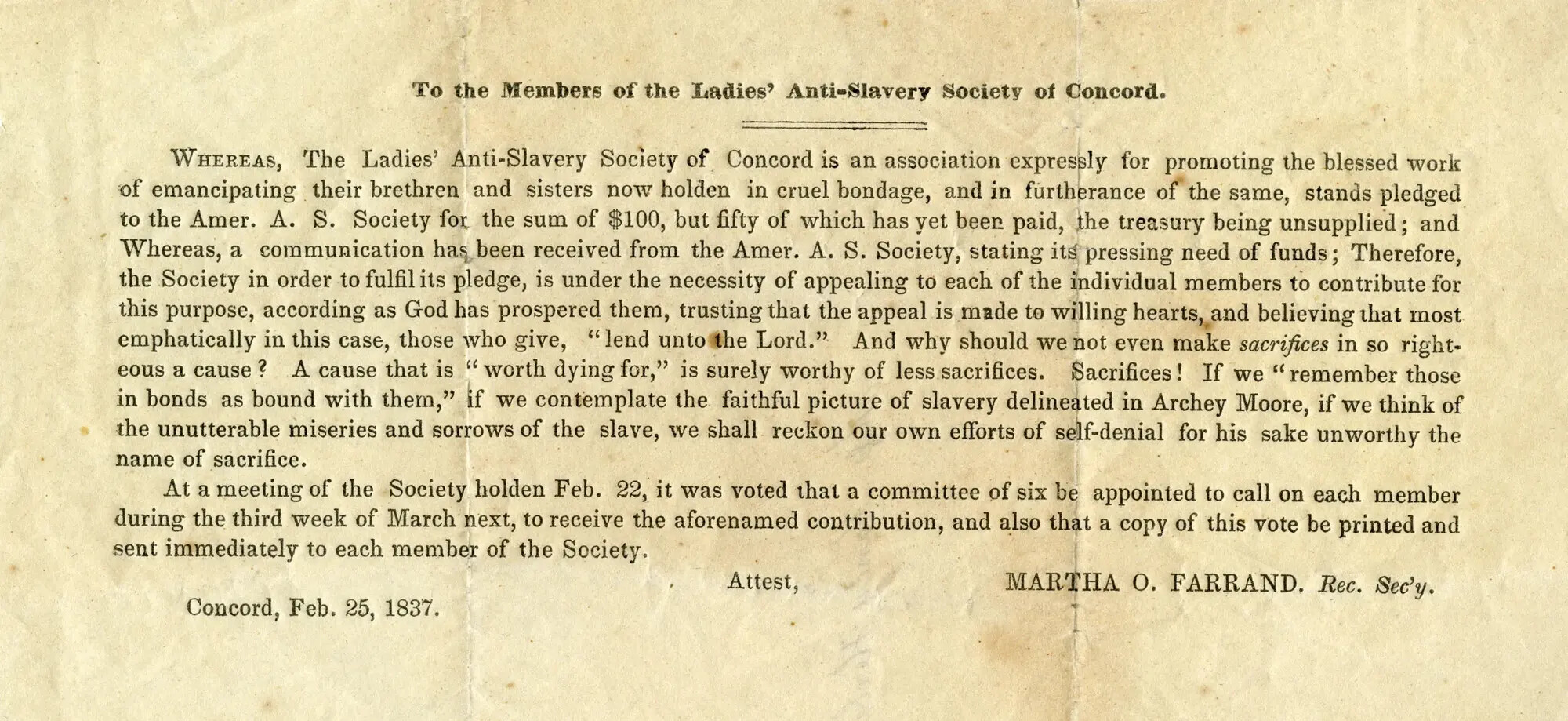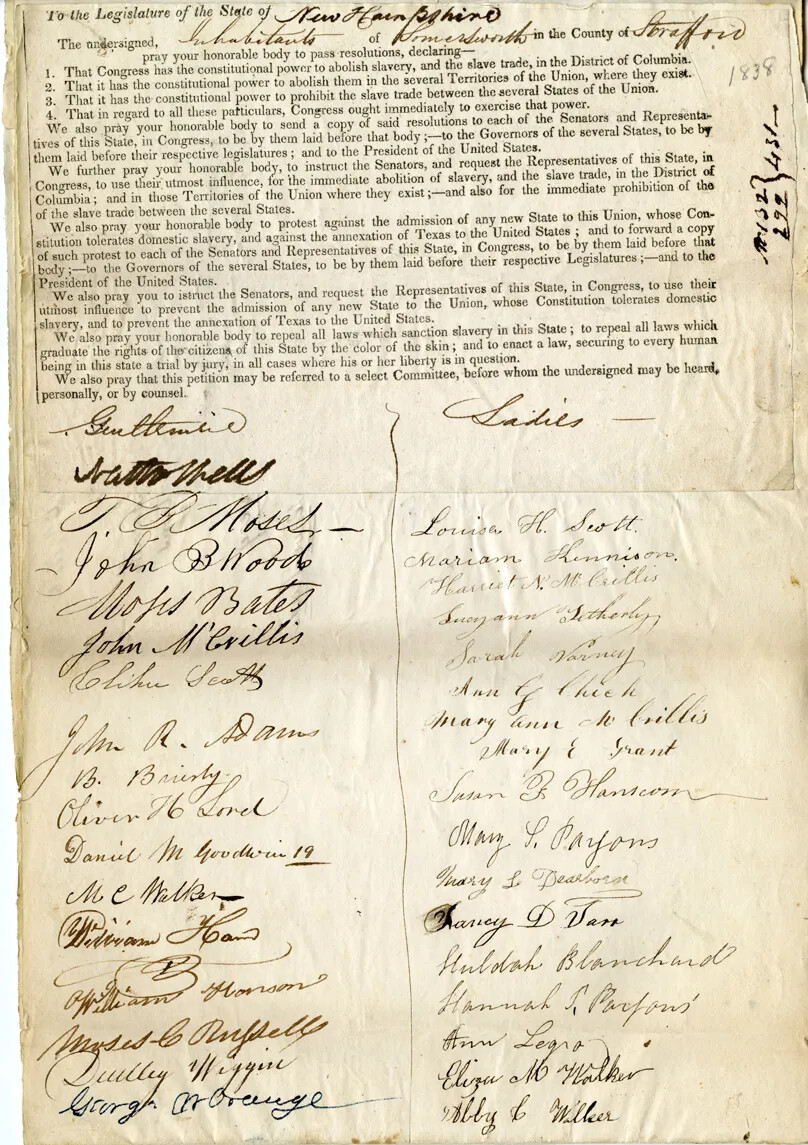 Anti-Slavery Petition from Somersworth