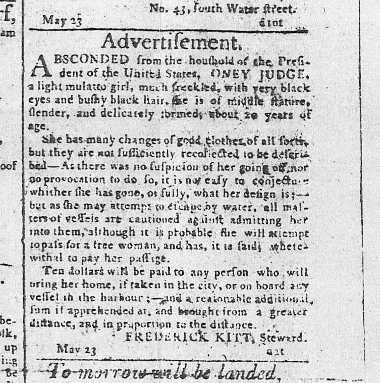 Ona Judge Runaway Notice